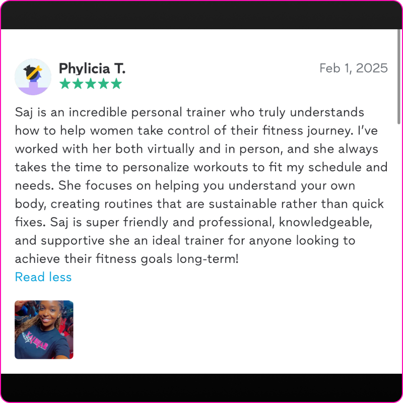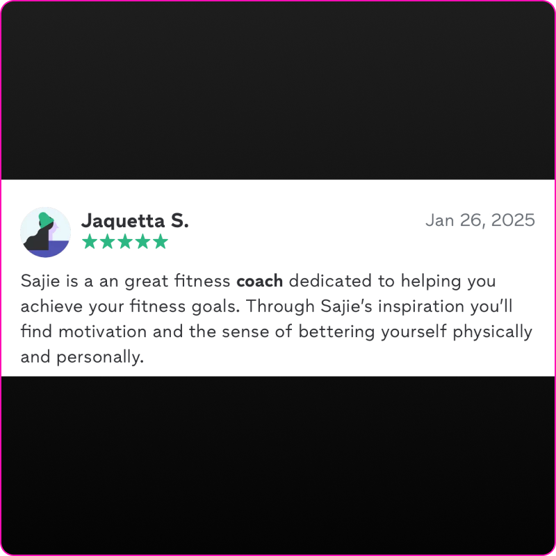 I’m Sajie, the creator of Sajie Jay Fitness and a trainer dedicated to helping people look stronger, feel better, and build real confidence. With years of coaching experience from athletes to everyday people—I’ve helped clients burn fat, sculpt muscle, and completely reshape their bodies using simple, effective systems that actually work.